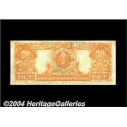 Fr. 1187 $20 1922 Gold Certificate Star Note Extremely Fine. There is a paper-clip rust stain at the top on this otherwise ideal-for-the-grade Star Note. Seventy-three serial numbers are listed by Murray for this non-mule 1187 Star. <BR><BR><B>Important notice:</B> Heritage usually auctions material at the rate of 200-250 lots per hour. On some occasions eBay Live bid software or the Internet may not be able to keep up with the pace of the auction. We recommend placing a realistic absentee bid now as insurance to avoid disappointment. Occasionally the auctioneer may eliminate or reject an eBay Live bid, and the auctioneer may also reopen a lot after the close of the eBay live bidding (usually because we missed an audience bid), and may reject your bid even if it shows you as the winning bidder. By bidding via eBay Live, you agree that Heritage may award the lot to another bidder at its sole discretion under the circumstances described above or any other reasonable circumstances. Since eBay bids are not shown to us until we open the lot on the floor, we treat those bids just like floor bids. In most cases the floor responds before the eBay bid is presented to us, due to Internet lag time, so for consistency we have made it a policy that floor bids are always considered first over tie eBay live bids. Also please note that all Heritage lots purchased through eBay Live carry a 20% Buyer's Premium. Please make sure you read the Terms and Conditions before you bid. <BR><BR><B>IMPORTANT ANNOUNCEMENT ABOUT RESERVES:</B> Heritage now divulges all reserves on its web site 7 days before every auction. If you want to know whether the reserve on this lot has been met, and if not, what the reserve amount is, please visit this lot page on the HeritageCoin.com web site, or email: bid@HeritageGalleries.com