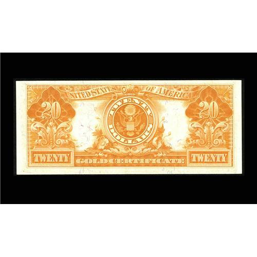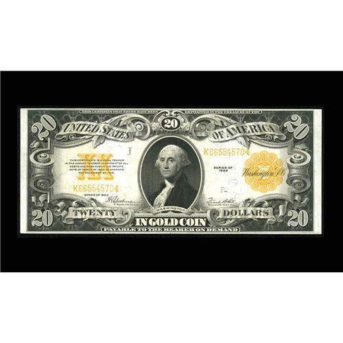 <B>Fr. 1187 $20 1922 Gold Certificate Very Choice New.</B></I> A bit too tight across the bottom for the full Gem grade, but Superb in almost every other sense, with full, flashy color and not a hint of a problem. Tremendous eye appeal and great technical merit.