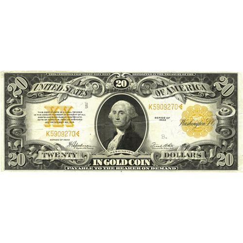 <B>Fr. 1187 $20 1922 Mule Gold Certificate Very Fine.</B></I> An ideal type note with wholly original paper.<BR><I>From The Plymouth Rock Collection</B></I>