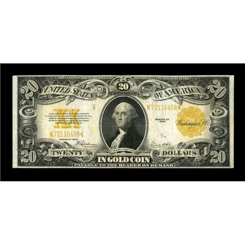 <B>Fr. 1187 $20 1922 Gold Certificate Very Fine.</B></I> Plenty of embossing remains on this pleasing mid-grade note. The back color remains bright and vibrant.<BR><BR><b>Shipping:</b> Coin/Currency (<a target="_blank" href="http://www.heritageauctions.com/common/shipping.php">view shipping information</a>)