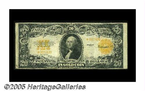 <B>Fr. 1187 $20 1922 Gold Star Certificate Fine.</B></I> This $20 Gold has escaped pinholes and edge tears, while also evading the long-running Murray census of star notes, until now.