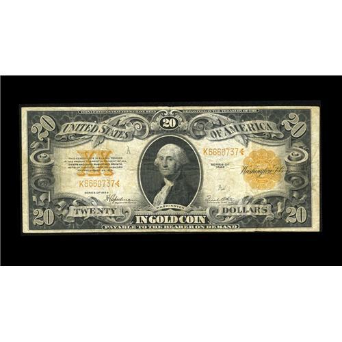 <B>Fr. 1187 $20 1922 Mule Gold Certificate Fine.</B></I> Nice color for the grade, face and back.