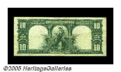<B>Fr. 119 $10 1901 Legal Tender Fine.</B></I> This Bison is without pinholes or edge tears.