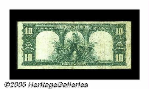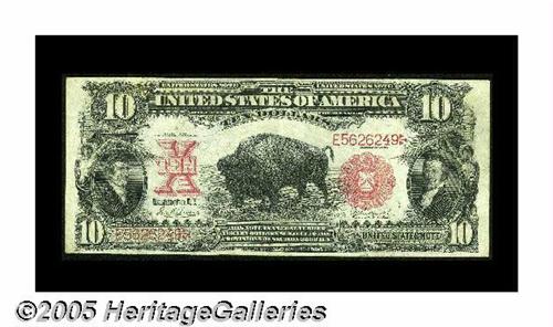 <B>Fr. 119 $10 1901 Legal Tender Fine-Very Fine.</B></I> A nice red overprint, sound edges, and crispy paper decorate this mid-grade Bison that is free of pinholes.