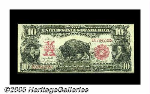 <B>Fr. 119 $10 1901 Legal Tender Very Fine-Extremely Fine.</B></I> A solid example that falls just short of the full XF grade. It has its original surfaces, excellent colors and very nice margins all around. A handsome lightly circulated Buffalo.