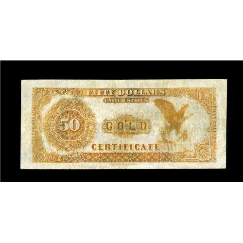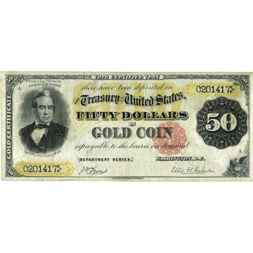 <B>Fr. 1193 $50 1882 Gold Certificate Fine-Very Fine.</B></I> The paper here is relatively unsoiled for the grade and all the printed details remain strong. The paper is uncompromised with the exception of a couple closed pinholes.