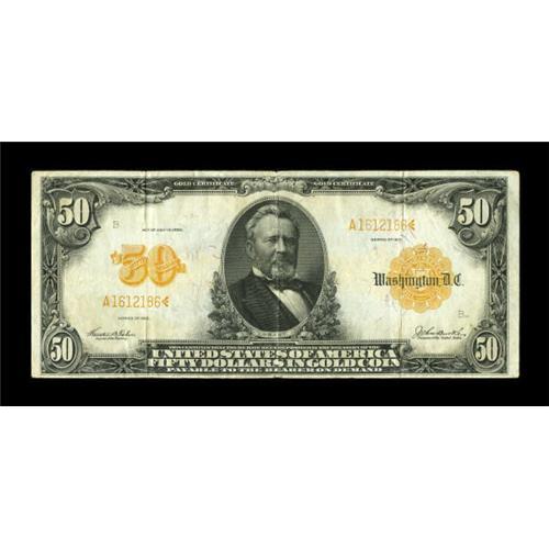 <B>Fr. 1199 $50 1913 Gold Certificate Very Fine.</B></I> The colors remain strong on both sides of this moderately-circulated fifty-dollar Gold.<BR><BR><b>Shipping:</b> Coins & Currency (<a target="_blank" href="http://www.heritageauctions.com/common/shipping.php">view shipping information</a>)