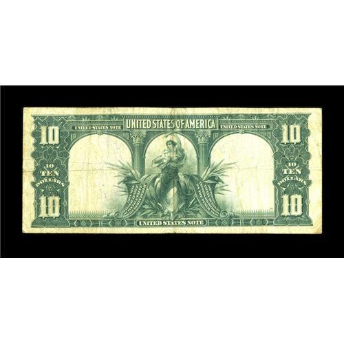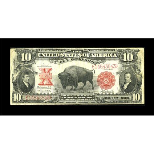 <B>Fr. 120 $10 1901 Legal Tender Fine-Very Fine.</B></I> This is a lovely mid-grade example of this scarcer Friedberg number that is outnumbered by its Fr. 122 type mate by a count of five to one. This original Bison displays even circulation with nice edges and is problem-free for the grade. This is also the variety with the face plate number found below the plate letter for this Friedberg number.<BR><BR><b>Shipping:</b> Coins & Currency (<a target="_blank" href="http://www.heritageauctions.com/common/shipping.php">view shipping information</a>)