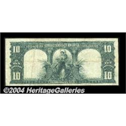 Fr. 120 $10 1901 Legal Tender Fine-Very Fine. A beautifully natural Bison with vibrant color in spite of a fair degree of circulation. Problem-free for the grade. <BR><BR><B>Important notice:</B> Heritage usually auctions material at the rate of 200-250 lots per hour. On some occasions eBay Live bid software or the Internet may not be able to keep up with the pace of the auction. We recommend placing a realistic absentee bid now as insurance to avoid disappointment. Occasionally the auctioneer may eliminate or reject an eBay Live bid, and the auctioneer may also reopen a lot after the close of the eBay live bidding (usually because we missed an audience bid), and may reject your bid even if it shows you as the winning bidder. By bidding via eBay Live, you agree that Heritage may award the lot to another bidder at its sole discretion under the circumstances described above or any other reasonable circumstances. Since eBay bids are not shown to us until we open the lot on the floor, we treat those bids just like floor bids. In most cases the floor responds before the eBay bid is presented to us, due to Internet lag time, so for consistency we have made it a policy that floor bids are always considered first over tie eBay live bids. Also please note that all Heritage lots purchased through eBay Live carry a 20% Buyer's Premium. Please make sure you read the Terms and Conditions before you bid. <BR><BR><B>IMPORTANT ANNOUNCEMENT ABOUT RESERVES:</B> Heritage now divulges all reserves on its web site 7 days before every auction. If you want to know whether the reserve on this lot has been met, and if not, what the reserve amount is, please visit this lot page on the HeritageCoin.com web site, or email: bid@HeritageGalleries.com