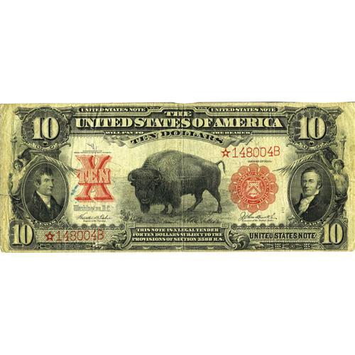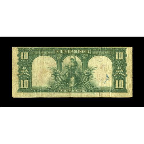 <B>Fr. 120 $10 1901 Legal Tender Star Note About Fine.</B></I> This newly discovered piece raises the population of Fr. 120 star notes to just nine, compared with 763 recorded non-star survivors for the same Friedberg number. All but one of the listed stars grades VG-F or worse. We sold a Very Good example in May of 2005 and a damaged Very Good specimen in January of 2006. This piece has a small ink mark on the back and a tiny edge split, but no other defects that matter. The colors are bright for the grade, and the overall look here is more than acceptable.