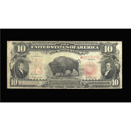 <B>Fr. 120 $10 1901 Legal Tender Star Note Very Good.</B></I> A whopping six examples make up the census for this Friedberg number. The overprints are slightly faded with a few pinholes and splits, but the note is complete. This note from the Richard Merlau collection has been off the market for a decade.<BR><I>From the Large Size Star Note Collection of Richard Merlau</B></I>