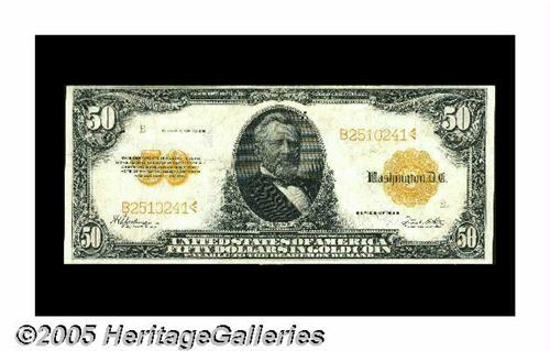 <B>Fr. 1200 $50 1922 Gold Certificate Extremely Fine.</B></I> While this is a nice enough looking note that is problem free for the grade, it lacks the quality that virtually every other note in the O'Neal Collection has. Our guess here is that this note was either an early acquisition or retained for some sentimental reason, as Jim certainly had a great eye for quality. In any case, it is a solid XF with excellent color.