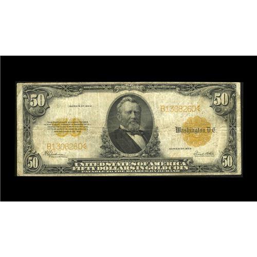 Fr. 1200 $50 1922 Gold Certificate Fine. Problem-free s Fr. 1200 $50 1922 Gold Certificate Fine.