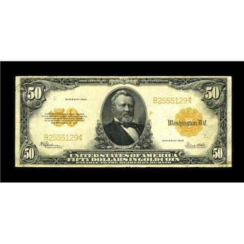 Fr. 1200 $50 1922 Gold Certificate Fine-Very Fine. A to