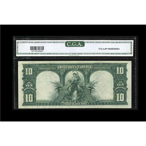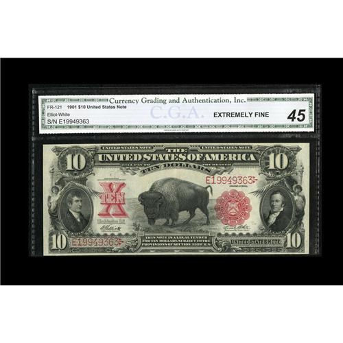 <B>Fr. 121 $10 1901 Mule Legal Tender CGA Extremely Fine 45.</B></I> This perfect three-fold XF boasts pleasing original paper and more importantly no breaks in the design along the folds.<BR><I>From The Troy Wiseman Collection</B></I>