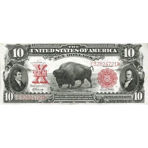 <B>Fr. 121 $10 1901 Mule Legal Tender Choice About New.</B></I> A slight bend in the paper is the only grade limiting factor on this otherwise perfectly original and most pleasing Bison. The paper originality is second to none and the embossing is bold. We are certain this note will garner the attention and money of a fully New note.