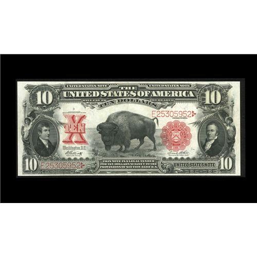 <B>Fr. 121 $10 1901 Legal Tender Extremely Fine.</B></I> This Bison stands above the crowd, grade wise as these mid-grade examples do not turn up too often. Embossing is present along with several light folds that allow this note to face up as new.