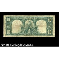 Fr. 121 $10 1901 Legal Tender Fine. Well circulated <B>Fr. 121 $10 1901 Legal Tender Fine.</B></I> Well circulated, and moderately soiled, but with no tears, marks or distractions. It's not a high-end Fine, but it does make the grade. The ink colors are very strong. <BR><BR><B>Important notice:</B> Heritage usually auctions material at the rate of 200-250 lots per hour. On some occasions eBay Live bid software or the Internet may not be able to keep up with the pace of the auction. We recommend placing a realistic absentee bid now as insurance to avoid disappointment. Occasionally the auctioneer may eliminate or reject an eBay Live bid, and the auctioneer may also reopen a lot after the close of the eBay live bidding (usually because we missed an audience bid), and may reject your bid even if it shows you as the winning bidder. By bidding via eBay Live, you agree that Heritage may award the lot to another bidder at its sole discretion under the circumstances described above or any other reasonable circumstances. Since eBay bids are not shown to us until we open the lot on the floor, we treat those bids just like floor bids. In most cases the floor responds before the eBay bid is presented to us, due to Internet lag time, so for consistency we have made it a policy that floor bids are always considered first over tie eBay live bids. Also please note that all Heritage lots purchased through eBay Live carry a 20% Buyer's Premium. Please make sure you read the Terms and Conditions before you bid. This lot is being auctioned in conjunction with a live floor auction by Heritage Galleries & Auctioneers. All final auction and invoice information will be supplied by Heritage Galleries & Auctioneers, and all other information should be considered preliminary. Lot:17006