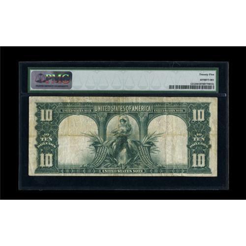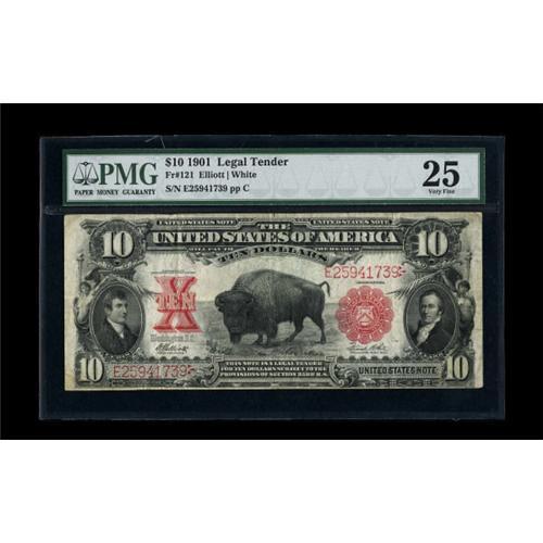 <B>Fr. 121 $10 1901 Legal Tender PMG Very Fine 25.</B></I> The overprints are bold on this original, evenly circulated Bison.<BR><BR><b>Shipping:</b> Coins & Currency (<a target="_blank" href="http://www.heritageauctions.com/common/shipping.php">view shipping information</a>)