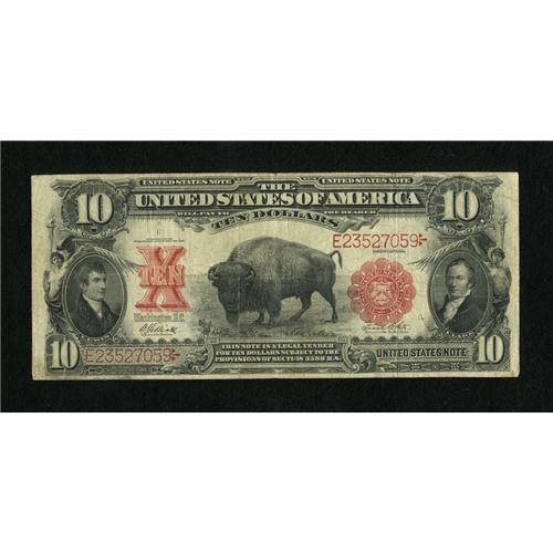 <B>Fr. 121 $10 1901 Mule Legal Tender Fine.</B></I> This Bison exhibits a pinhole through the head of the animal. Back plate number 328 is found in the mule position on the back.<BR><I>From The Collection of Greg Southward</B></I><BR><BR><b>Shipping:</b> Coins & Currency (<a target="_blank" href="http://www.heritageauctions.com/common/shipping.php">view shipping information</a>)