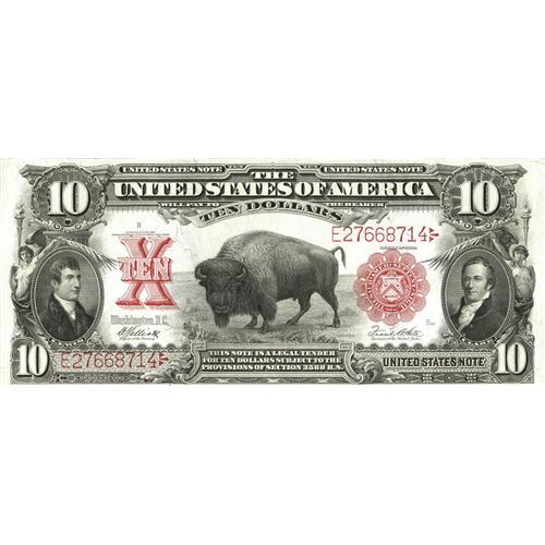<B>Fr. 121 $10 1901 Mule Legal Tender Gem New.</B></I> Original surfaces, perfect inks, and bright white paper are merits of this Bison that is new to the census, but falls comfortably within a run of CU notes. Some may call for a bit more bottom margin, but the three large margins more than compensate for it.