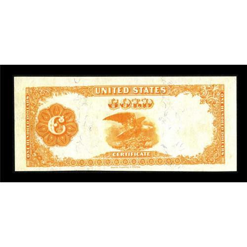 <B>Fr. 1211 $100 1882 Gold Certificate Extremely Fine+.</B></I> A few light folds account for the grade on this otherwise AU appearing note. The seal is a deep cherry red and the gold overprint and orange-gold back remain perfectly bold. This is the consecutive note to a PCGS graded AU58 that sold for more than $20,000 in 2005. That piece is likely the finest known in private hands, but this example is not far behind.<B><BR></B></I><I>From The Drew Keough Collection</B></I><BR><BR><b>Shipping:</b> Coins & Currency (<a target="_blank" href="http://www.heritageauctions.com/common/shipping.php">view shipping information</a>)