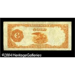 Fr. 1212 $100 1882 Gold Certificate Very Fine. Abou <B>Fr. 1212 $100 1882 Gold Certificate Very Fine.</B></I> About 40 examples are known of this Napier-Burke signed Gold Certificate, but the number is almost never seen. This one is evenly circulated with great color and unusually broad, even margins. <BR><BR><B>Important notice:</B> Heritage usually auctions material at the rate of 200-250 lots per hour. On some occasions eBay Live bid software or the Internet may not be able to keep up with the pace of the auction. We recommend placing a realistic absentee bid now as insurance to avoid disappointment. Occasionally the auctioneer may eliminate or reject an eBay Live bid, and the auctioneer may also reopen a lot after the close of the eBay live bidding (usually because we missed an audience bid), and may reject your bid even if it shows you as the winning bidder. By bidding via eBay Live, you agree that Heritage may award the lot to another bidder at its sole discretion under the circumstances described above or any other reasonable circumstances. Since eBay bids are not shown to us until we open the lot on the floor, we treat those bids just like floor bids. In most cases the floor responds before the eBay bid is presented to us, due to Internet lag time, so for consistency we have made it a policy that floor bids are always considered first over tie eBay live bids. Also please note that all Heritage lots purchased through eBay Live carry a 20% Buyer's Premium. Please make sure you read the Terms and Conditions before you bid. This lot is being auctioned in conjunction with a live floor auction by Heritage Galleries & Auctioneers. All final auction and invoice information will be supplied by Heritage Galleries & Auctioneers, and all other information should be considered preliminary. Lot:17868