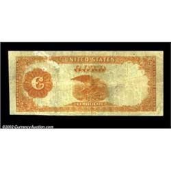 Fr. 1213 $100 1882 Gold Certificate Fine. The lower right corner is missing, but only in the margin area, with no design affected. Fr. 1213 is a rather scarce note, with a few over 30 examples known for all grades combined. CAA has sold sixteen of them. Important notice: We expect to be auctioning lots at the rate of 200-250 per hour. Sometimes eBay Premier live bid software cannot keep up with that pace, so we strongly recommend that you place a realistic proxy bid now as insurance to avoid disappointment. Also please note that all Heritage/CAA lots purchased through eBay Premier carry a 20% Buyer's Premium. Please make sure you read the Terms and Conditions.