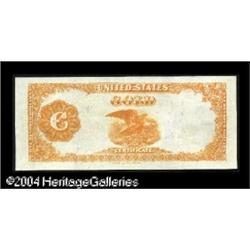 Fr. 1214 $100 1882 Gold Certificate Fine. A solid examp <B>Fr. 1214 $100 1882 Gold Certificate Extremely Fine-About New.</B></I> A well centered $100 Gold Certificate with excellent paper originality, broad, even margins and bright, fresh colors. The deep embossing attests to the unmolested originality of this premium note. This is exactly the type of large size note that often sells for a premium well above what its technical grade might infer based on its superior level of aesthetic endowments. <BR><BR><B>Important notice:</B> Heritage usually auctions material at the rate of 200-250 lots per hour. On some occasions eBay Live bid software or the Internet may not be able to keep up with the pace of the auction. We recommend placing a realistic absentee bid now as insurance to avoid disappointment. Occasionally the auctioneer may eliminate or reject an eBay Live bid, and the auctioneer may also reopen a lot after the close of the eBay live bidding (usually because we missed an audience bid), and may reject your bid even if it shows you as the winning bidder. By bidding via eBay Live, you agree that Heritage may award the lot to another bidder at its sole discretion under the circumstances described above or any other reasonable circumstances. Since eBay bids are not shown to us until we open the lot on the floor, we treat those bids just like floor bids. In most cases the floor responds before the eBay bid is presented to us, due to Internet lag time, so for consistency we have made it a policy that floor bids are always considered first over tie eBay live bids. Also please note that all Heritage lots purchased through eBay Live carry a 20% Buyer's Premium. Please make sure you read the Terms and Conditions before you bid. This lot is being auctioned in conjunction with a live floor auction by Heritage Galleries & Auctioneers. All final auction and invoice information will be supplied by Heritage Galleries & Auctioneers, and all other information should be considered preliminary. Lot:17869