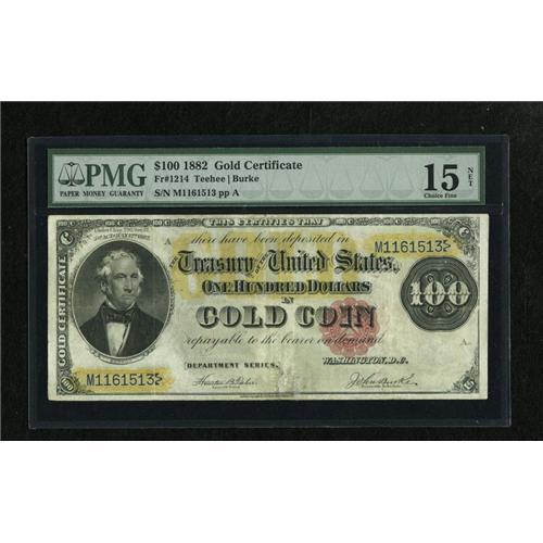 Fr. 1214 $100 1882 Gold Certificate PMG Choice F