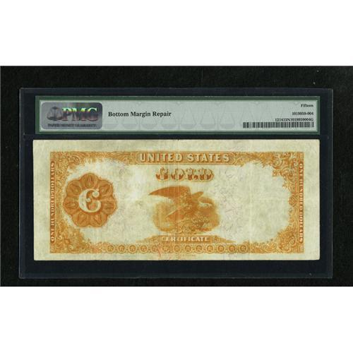 <B>Fr. 1214 $100 1882 Gold Certificate PMG Choice Fine 15 Net.</B></I> The colors are sufficiently bright on this issue that has a repair noted in at the bottom center.<BR><BR><b>Shipping:</b> Coins & Currency (<a target="_blank" href="http://www.heritageauctions.com/common/shipping.php">view shipping information</a>)