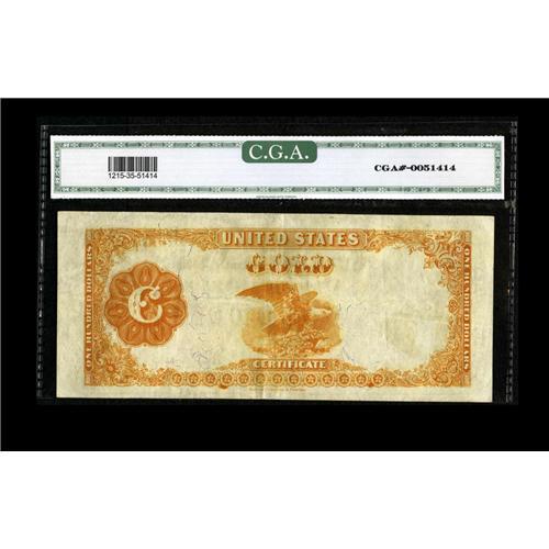 48B. CURRENCY – Notes sold referencing a third-party grading service are sold "as is" without any express or implied warranty, except for a guarantee by Auctioneer that they are genuine. Grading, condition or other attributes of any lot may have a material effect on its value, and the opinion of others, including independent grading services such as PCGS Currency, PMG, and CGA may differ with that of Auctioneer. Auctioneer shall not be bound by any prior or subsequent opinion, determination, or certification by any independent grading service. The grades assigned by any grading service to any note offered in any Heritage Currency Auctions of America sale represent the opinion of that grading service only,and may differ in material respects from the grade assigned to the same note in previous sales by HCAA or other auction companies, or from the grade that would be assigned by any other grading service. HCAA is unable to view any third party graded item outside of the holder, and specifically disclaims any liability of any kind to bidders who bid on third party graded items for mistakes of commission or omission by any grading service. Bidders are hereby notified that currency grading standards have changed in the past and are subject to change in the future, and that the only remedy bidder has with respect to third party graded notes is to deal directly with the grading service certifying the item. Bidders are also advised that Auctioneer makes no representation or guarantee that any item obtained by Bidder will be assigned any particular grade by any particular grading service, and as noted herein, Bidder specifically waives any claim to right of return of any item because of the opinion, determination, or certification, or lack thereof, by any independent grading service. Certain warranties may be available from the grading services and the Bidder is referred to them for further details: Paper Money Guaranty (PMG), PO Box 4711, Sarasota FL 34230; PCGS Currency, PO Box 9458, Newport Beach, CA 92658; Currency Grading & Authentication (CGA), PO Box 418, Three Bridges, NJ 08887.