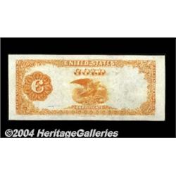 Fr. 1215 $100 1922 Gold Certificate Choice About New. Gorgeous margins, bright colors and the eye appeal of a perfect Gem. A practiced eye is needed to spot the deceptive light center fold. <BR><BR><B>Important notice:</B> Heritage usually auctions material at the rate of 200-250 lots per hour. On some occasions eBay Live bid software or the Internet may not be able to keep up with the pace of the auction. We recommend placing a realistic absentee bid now as insurance to avoid disappointment. Occasionally the auctioneer may eliminate or reject an eBay Live bid, and the auctioneer may also reopen a lot after the close of the eBay live bidding (usually because we missed an audience bid), and may reject your bid even if it shows you as the winning bidder. By bidding via eBay Live, you agree that Heritage may award the lot to another bidder at its sole discretion under the circumstances described above or any other reasonable circumstances. Since eBay bids are not shown to us until we open the lot on the floor, we treat those bids just like floor bids. In most cases the floor responds before the eBay bid is presented to us, due to Internet lag time, so for consistency we have made it a policy that floor bids are always considered first over tie eBay live bids. Also please note that all Heritage lots purchased through eBay Live carry a 20% Buyer's Premium. Please make sure you read the Terms and Conditions before you bid. <BR><BR><B>IMPORTANT ANNOUNCEMENT ABOUT RESERVES:</B> Heritage now divulges all reserves on its web site 7 days before every auction. If you want to know whether the reserve on this lot has been met, and if not, what the reserve amount is, please visit this lot page on the HeritageCoin.com web site, or email: bid@HeritageGalleries.com