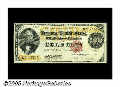<B>Fr. 1215 $100 1922 Gold Certificate Extremely Fine.</B></I> Beautiful colors and margins, as well as ideal paper originality, unfortunately, there is a not-too-terribly well repaired tear in the bottom margin and another very short one in the top. This is still an attractive note with considerable value.