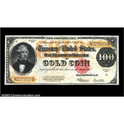 Fr. 1215 $100 1922 Gold Certificate Extremely Fine. Bright, fresh and strictly original, with perfect color. The note has three vertical folds and a horizontal fold, but a grade of less than Extremely Fine would simply be inaccurate. Important notice: We expect to be auctioning lots at the rate of 200-250 per hour. Sometimes eBay Premier live bid software cannot keep up with that pace, so we strongly recommend that you place a realistic proxy bid now as insurance to avoid disappointment. Also please note that all Heritage/CAA lots purchased through eBay Premier carry a 20% Buyer's Premium. Please make sure you read the Terms and Conditions.