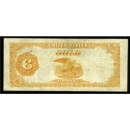 <B>Fr. 1215 $100 1922 Gold Certificate Fine+.</B></I> Here is another evenly circulated high denomination note that didn't win the battle with the pin monster. Bright, vibrant colors still pervade this example.