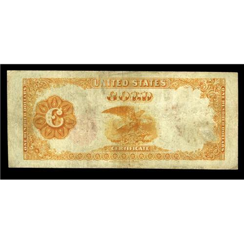 <B>Fr. 1215 $100 1922 Gold Certificate Fine-Very Fine.</B></I> Lots of color remains on this well margined $100 Gold. The note has the appearance of a Choice VF from the face. The back is a bit weaker and shows some scattered staining that keeps it from the full VF grade