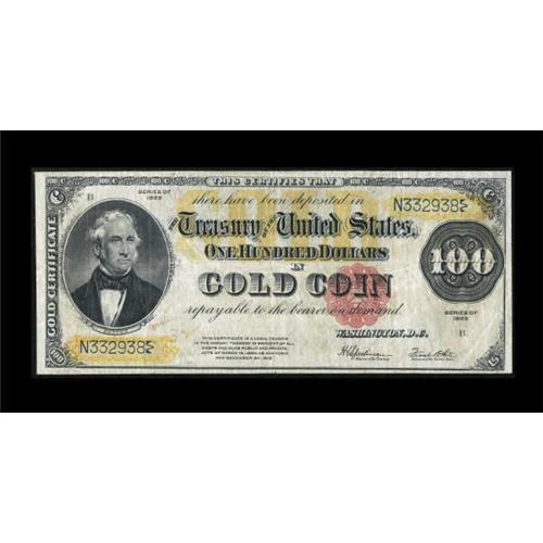 <B>Fr. 1215 $100 1922 Gold Certificate Fine.</B></I> A problem-free example of this always-popular $100 Gold note that has retained all of its color. The circulation wear is even, and the note has considerable claim to the Very Fine grade. <BR><BR><b>Shipping:</b> Coins & Currency (<a target="_blank" href="http://www.heritageauctions.com/common/shipping.php">view shipping information</a>)