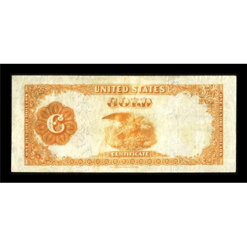 <B>Fr. 1215 $100 1922 Gold Certificate Very Fine++.</B></I> A bright representative for type that still exhibits some embossing in the portrait area. Nicely margined with excellent color seen.<BR><BR><b>Shipping:</b> Coins & Currency (<a target="_blank" href="http://www.heritageauctions.com/common/shipping.php">view shipping information</a>)