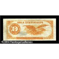 Fr. 1216b $500 1882 Gold Certificate About Extremely Fi <B>Fr. 1216b $500 1882 Gold Certificate Very Fine.</B></I> Very attractive and a perfectly natural example for the grade. The colors are bold and vivid and the note is beautifully margined. This piece is solidly in the top half of the roughly fifty examples known. <BR><BR><B>Important notice:</B> Heritage usually auctions material at the rate of 200-250 lots per hour. On some occasions eBay Live bid software or the Internet may not be able to keep up with the pace of the auction. We recommend placing a realistic absentee bid now as insurance to avoid disappointment. Occasionally the auctioneer may eliminate or reject an eBay Live bid, and the auctioneer may also reopen a lot after the close of the eBay live bidding (usually because we missed an audience bid), and may reject your bid even if it shows you as the winning bidder. By bidding via eBay Live, you agree that Heritage may award the lot to another bidder at its sole discretion under the circumstances described above or any other reasonable circumstances. Since eBay bids are not shown to us until we open the lot on the floor, we treat those bids just like floor bids. In most cases the floor responds before the eBay bid is presented to us, due to Internet lag time, so for consistency we have made it a policy that floor bids are always considered first over tie eBay live bids. Also please note that all Heritage lots purchased through eBay Live carry a 20% Buyer's Premium. Please make sure you read the Terms and Conditions before you bid. This lot is being auctioned in conjunction with a live floor auction by Heritage Galleries & Auctioneers. All final auction and invoice information will be supplied by Heritage Galleries & Auctioneers, and all other information should be considered preliminary. Lot:17879