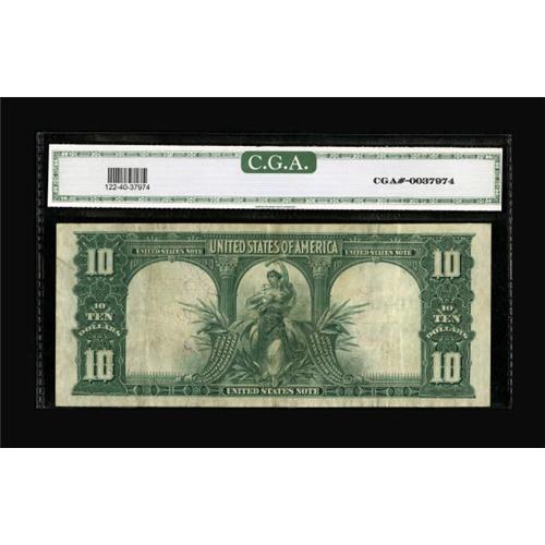 <B>Fr. 122 $10 1901 Legal Tender CGA Extremely Fine 40.</B></I> A brightly colored Bison exhibiting several folds with some embossing visible beneath the holder.<BR><BR><b>Shipping:</b> Coins & Currency (<a target="_blank" href="http://www.heritageauctions.com/common/shipping.php">view shipping information</a>)