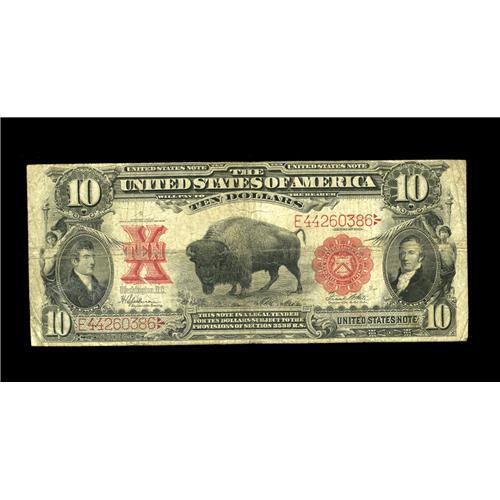 <B>Fr. 122 $10 1901 Legal Tender Fine.</B></I> A nice red overprint remains on this Bison that has a handful of pinholes, but still represents the type well as a mid-grade note.