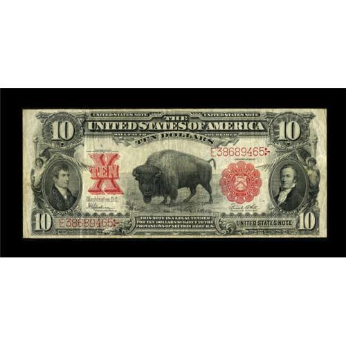 <B>Fr. 122 $10 1901 Legal Tender Fine-Very Fine.</B></I> A heavy horizontal fold is evident on this still vivid Bison.<BR><BR><b>Shipping:</b> Coins & Currency (<a target="_blank" href="http://www.heritageauctions.com/common/shipping.php">view shipping information</a>)
