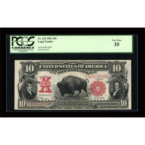 <B>Fr. 122 $10 1901 Legal Tender PCGS Very Fine 35.</B></I> The paper is bright and attractive, giving the note an overall EF appearance.<BR><I>From The Kansas City Collection.</B></I><BR><BR><b>Shipping:</b> Coins & Currency (<a target="_blank" href="http://www.heritageauctions.com/common/shipping.php">view shipping information</a>)