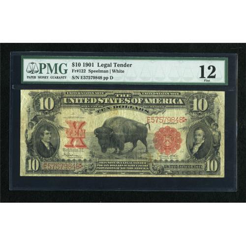 Fr. 122 $10 1901 Legal Tender PMG Fine 12.