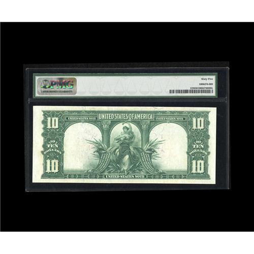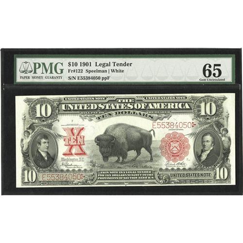 <B>Fr. 122 $10 1901 Legal Tender PMG Gem Uncirculated 65.</B></I> This nicely centered Bison is bright with great print qualities.