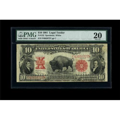 <B>Fr. 122 $10 1901 Legal Tender PMG Very Fine 20.</B></I> Bright color remains on this lightly handled note.<BR><BR><b>Shipping:</b> Coins & Currency (<a target="_blank" href="http://www.heritageauctions.com/common/shipping.php">view shipping information</a>)