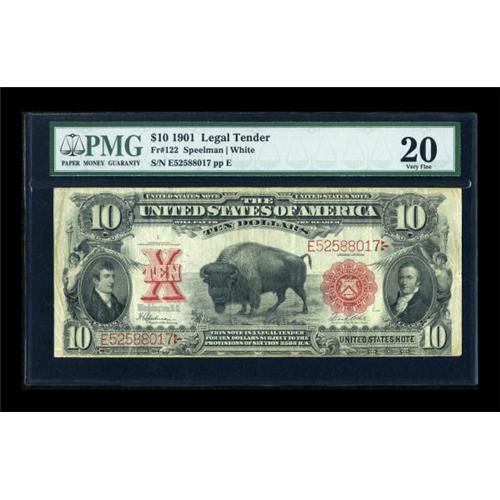 <B>Fr. 122 $10 1901 Legal Tender PMG Very Fine 20.</B></I> Lots of color for the grade on this final number of the Bison run. <BR><BR><b>Shipping:</b> Coins & Currency (<a target="_blank" href="http://www.heritageauctions.com/common/shipping.php">view shipping information</a>)