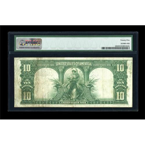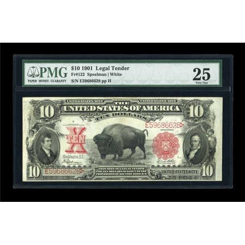 <B>Fr. 122 $10 1901 Legal Tender PMG Very Fine 25.</B></I> The Bison vignette is unaffected by the folds that account for the grade, giving the note an overall EF appearance.<BR><BR><b>Shipping:</b> Coins & Currency (<a target="_blank" href="http://www.heritageauctions.com/common/shipping.php">view shipping information</a>)