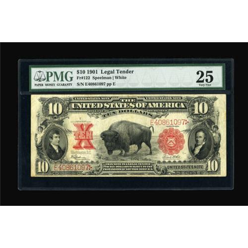 <B>Fr. 122 $10 1901 Legal Tender PMG Very Fine 25.</B></I> There just never seem to be enough of these pleasing lightly circulated Bisons on the market.<B><BR></B></I><I>From The Warren Marshall Collection</B></I><BR><BR><b>Shipping:</b> Coins & Currency (<a target="_blank" href="http://www.heritageauctions.com/common/shipping.php">view shipping information</a>)